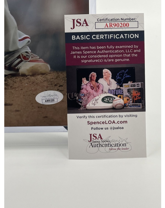 Celebrate 2008 World Series MVP Cole Hamels with this beautifully framed 16x20 signed photo. Authenticated by JSA, it’s a tribute to one of the greatest pitchers in Phillies history.