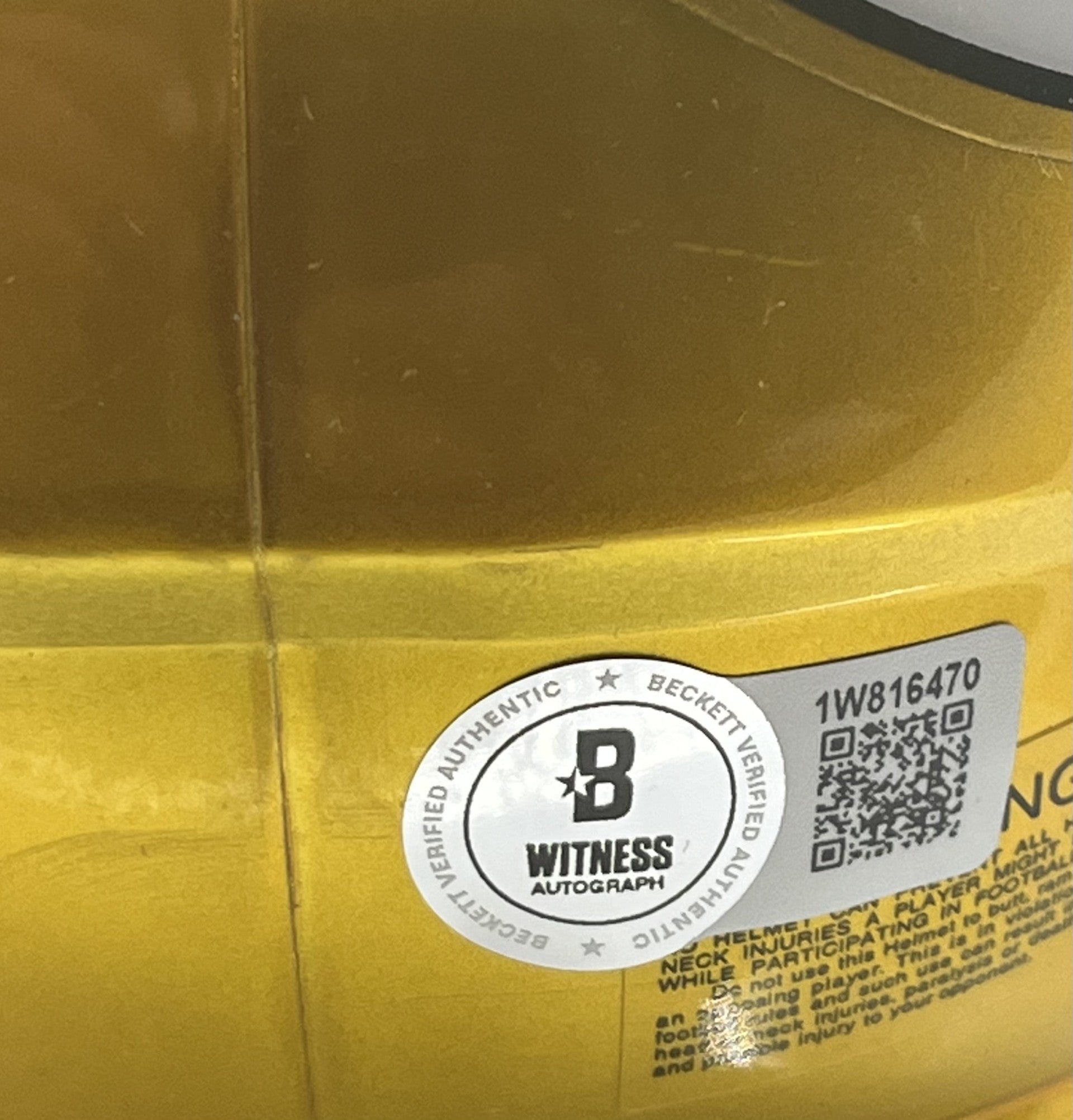 Riddell Minnesota Vikings Flash Alternate Speed mini helmet. Hand-signed by J. J. McCarthy. Includes an official Beckett Authentication Services serially numbered hologram for authenticity purposes. The signing of this item was witnessed by Beckett. Authentication: Beckett Hologram